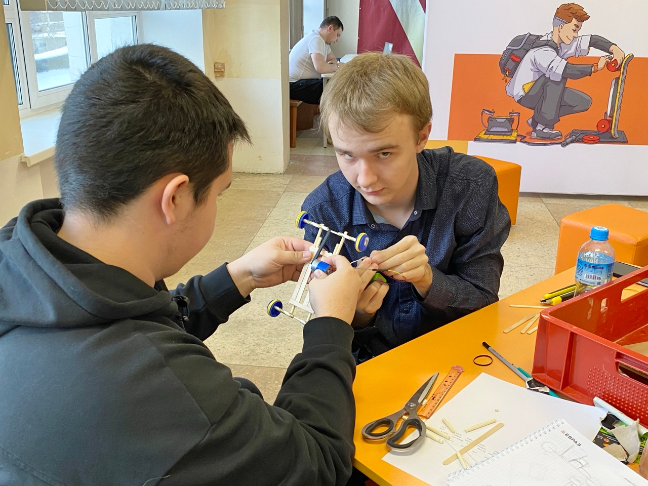 Участники образовательного интенсива "Стальная основа карьеры" из инженерных классов ЕВРАЗа школ 45,49, ЦО№1 Нижнего Тагила получили одинаковый набор материалов, но инженерные решения - у всех команд разные!