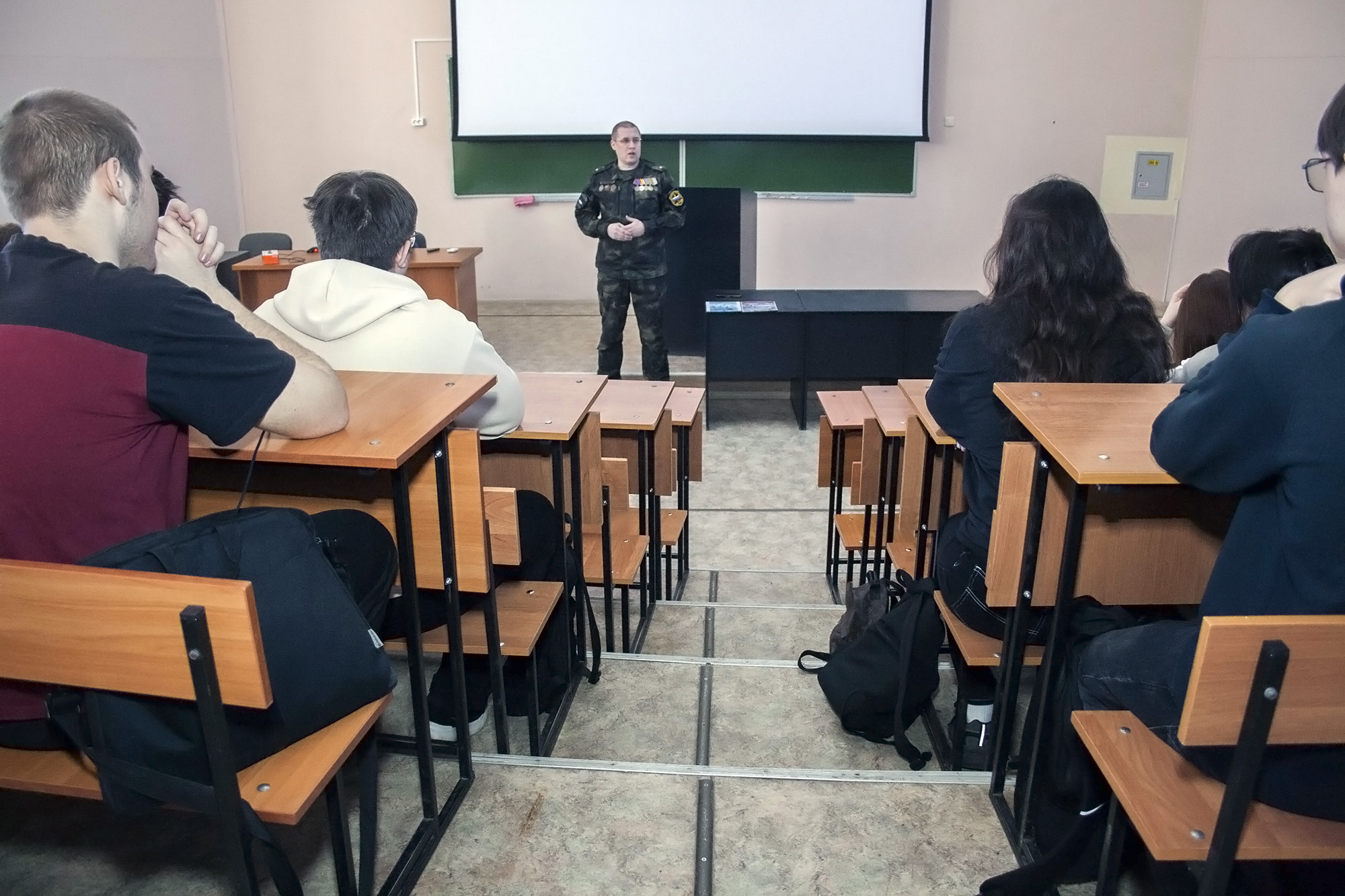 Лекции «Антитеррор» и «Действия при ракетной угрозе и угрозе атаки БПЛА» для студентов и сотрудников института провел советник главы Нижнего Тагила, ветеран боевых действий на Северном Кавказе, участник СВО, руководитель Нижнетагильского отделения организации ветеранов «Боевое братство» Андрей Малинин. Он дал конкретные алгоритмы действий при возникновении подобных опасностей.