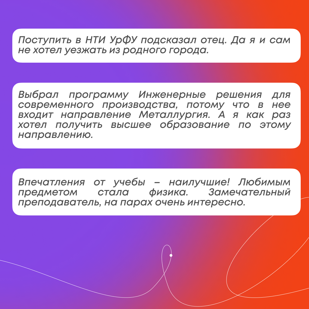 Выбор профессии - важный шаг в жизни. Мы спросили у наших первокурсников, как они принимали решение? Почему поступили в Нижнетагильский технологический институт УрФУ? Какие впечатления от учебы?