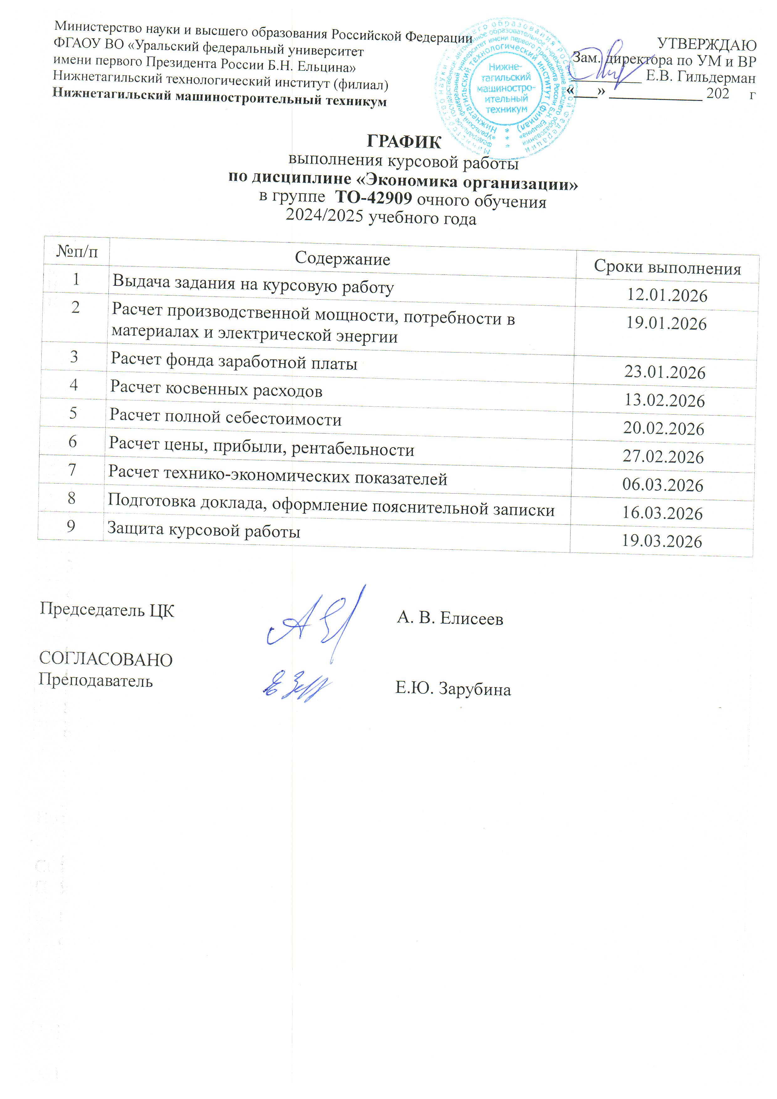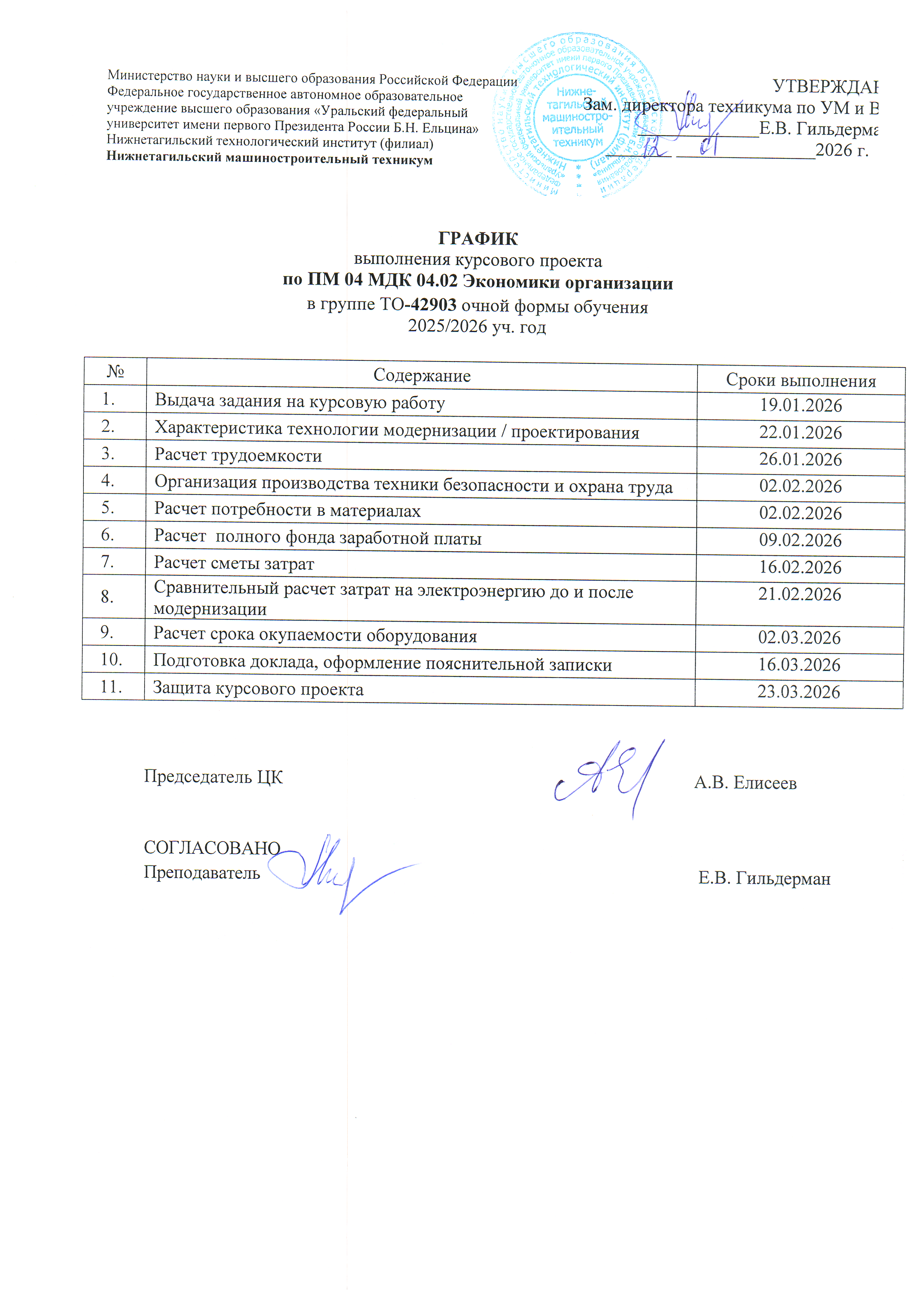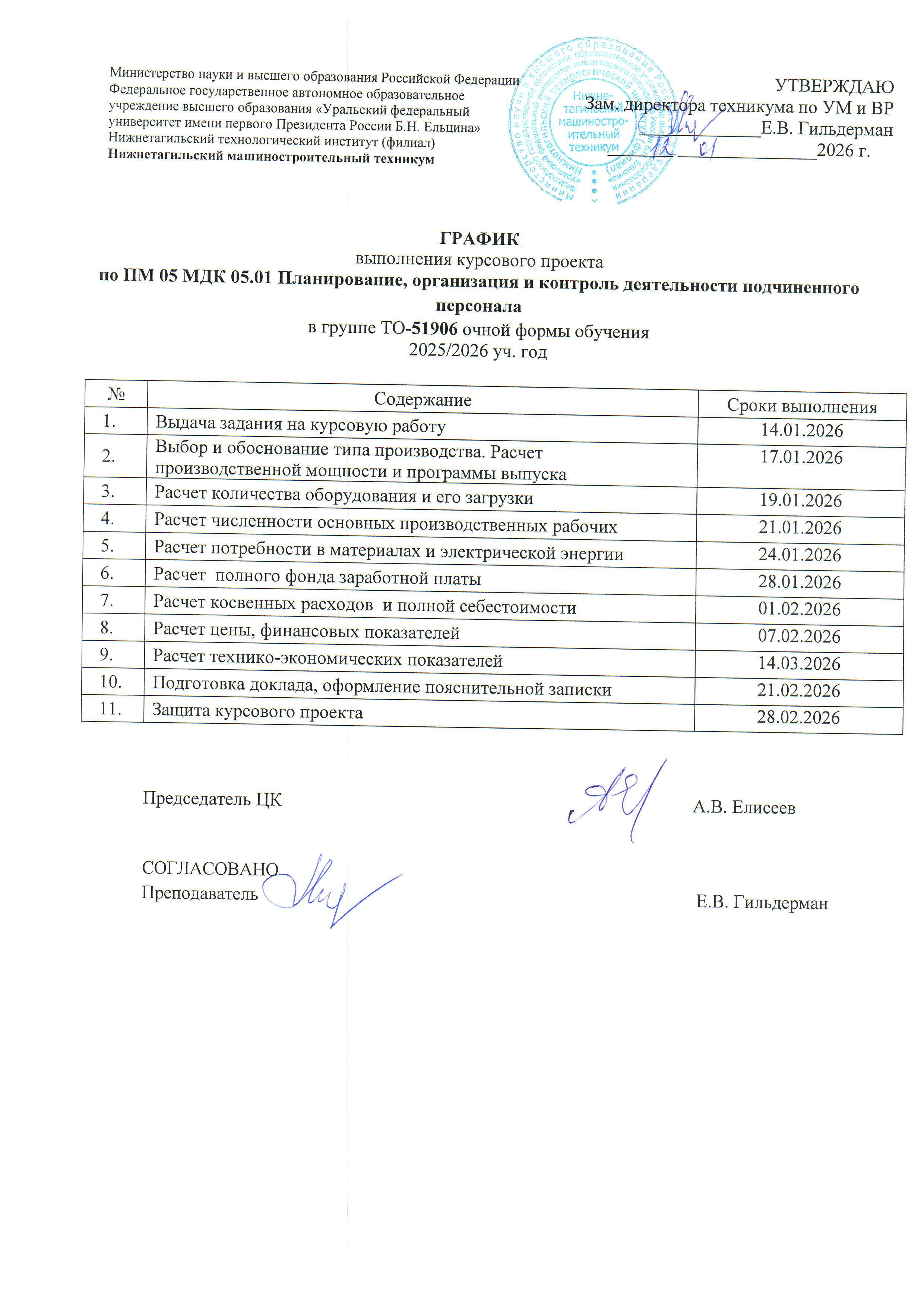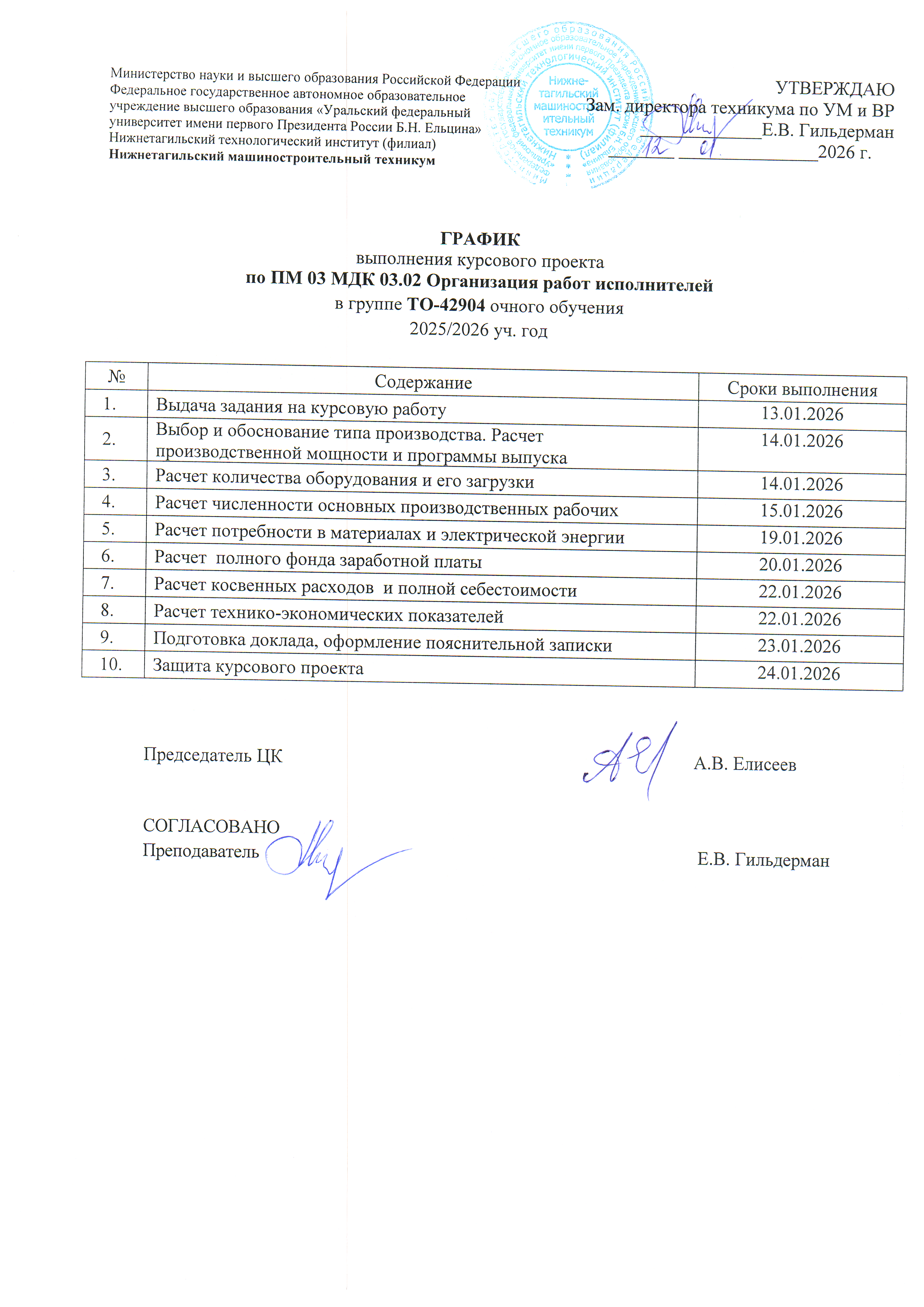 ГРАФИКИ ВЫПОЛНЕНИЯ КУРСОВЫХ ПРОЕКТОВ