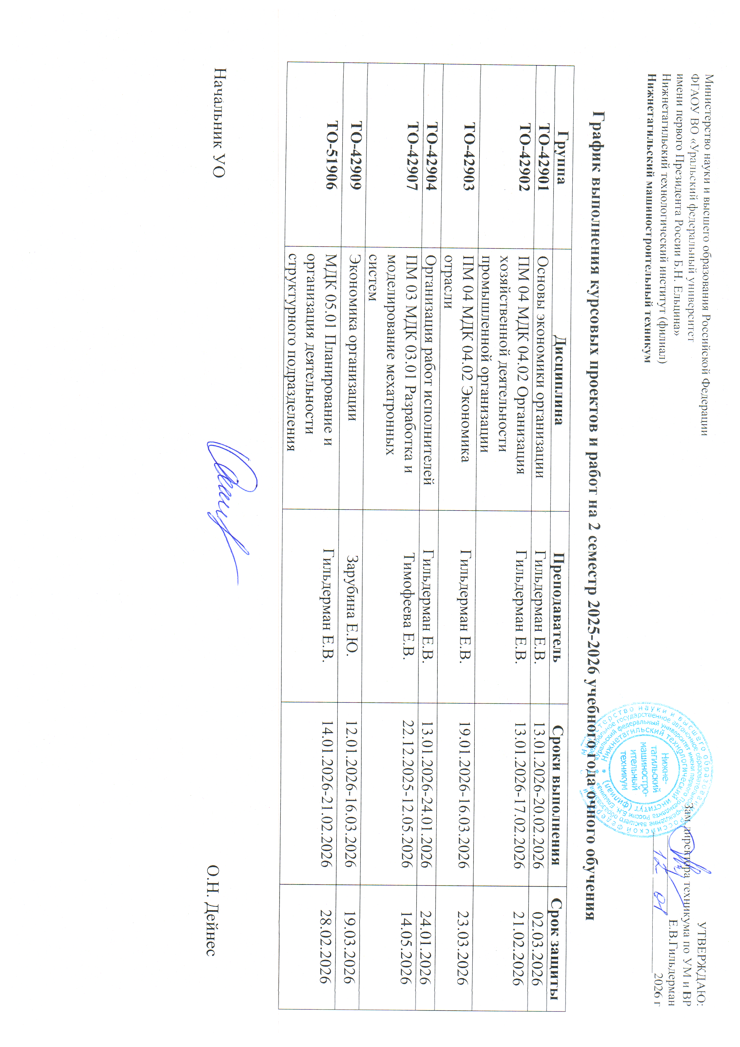 ГРАФИКИ ЗАЩИТЫ КУРСОВЫХ ПРОЕКТОВ