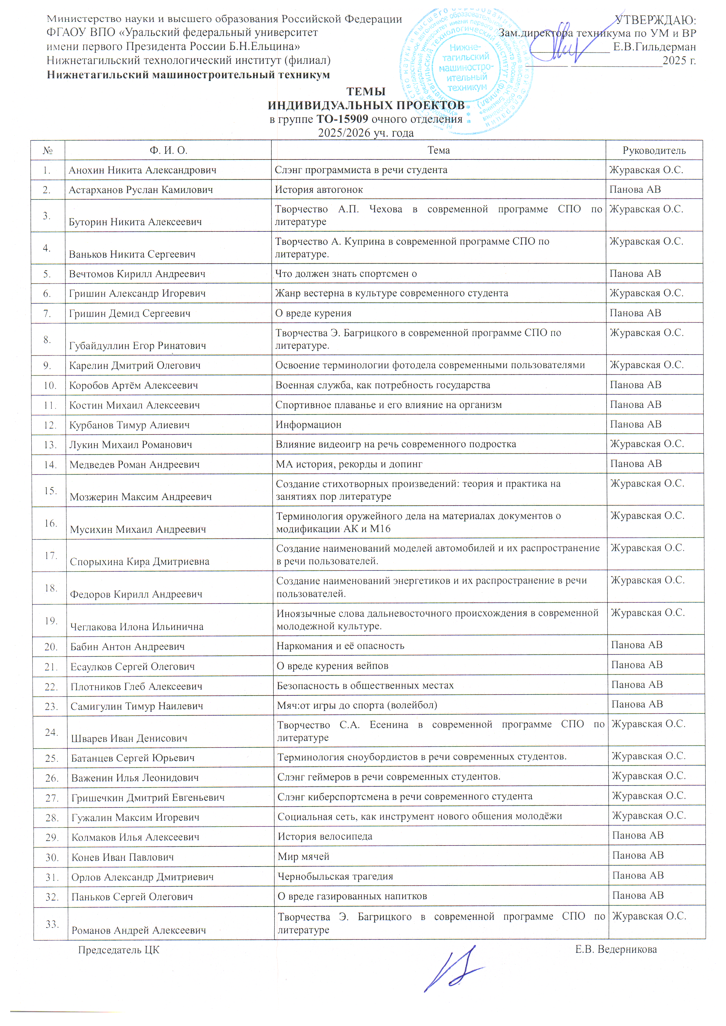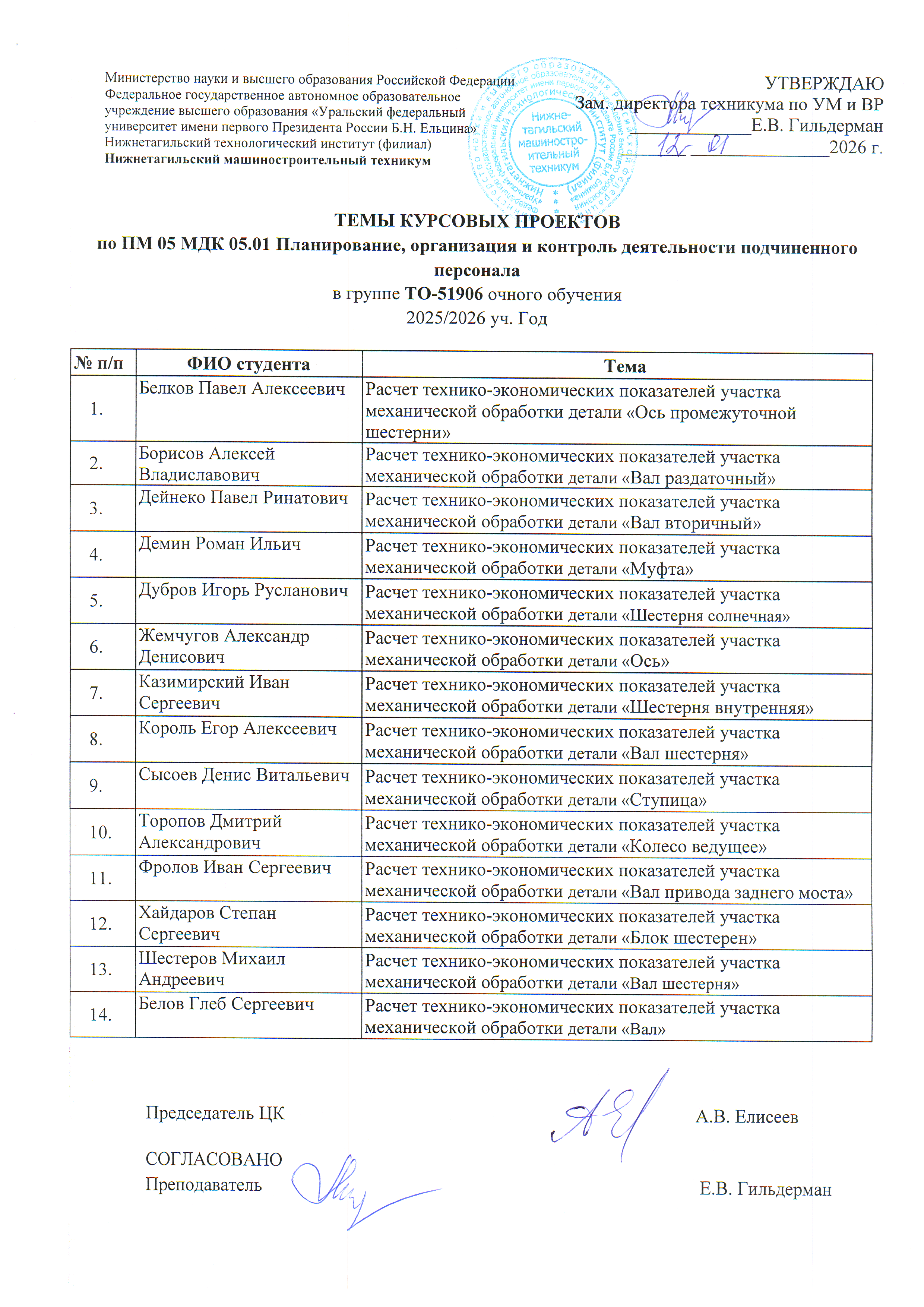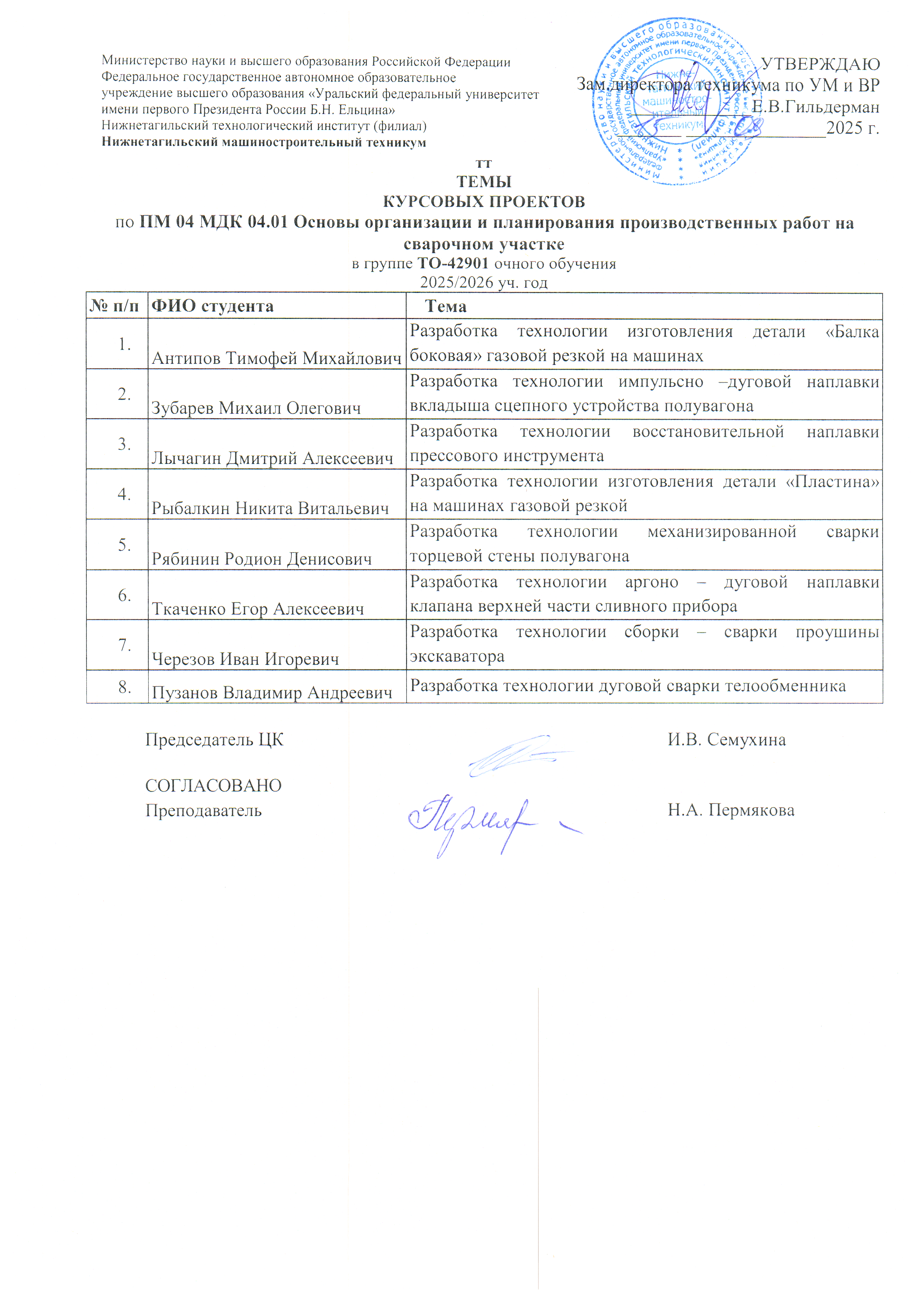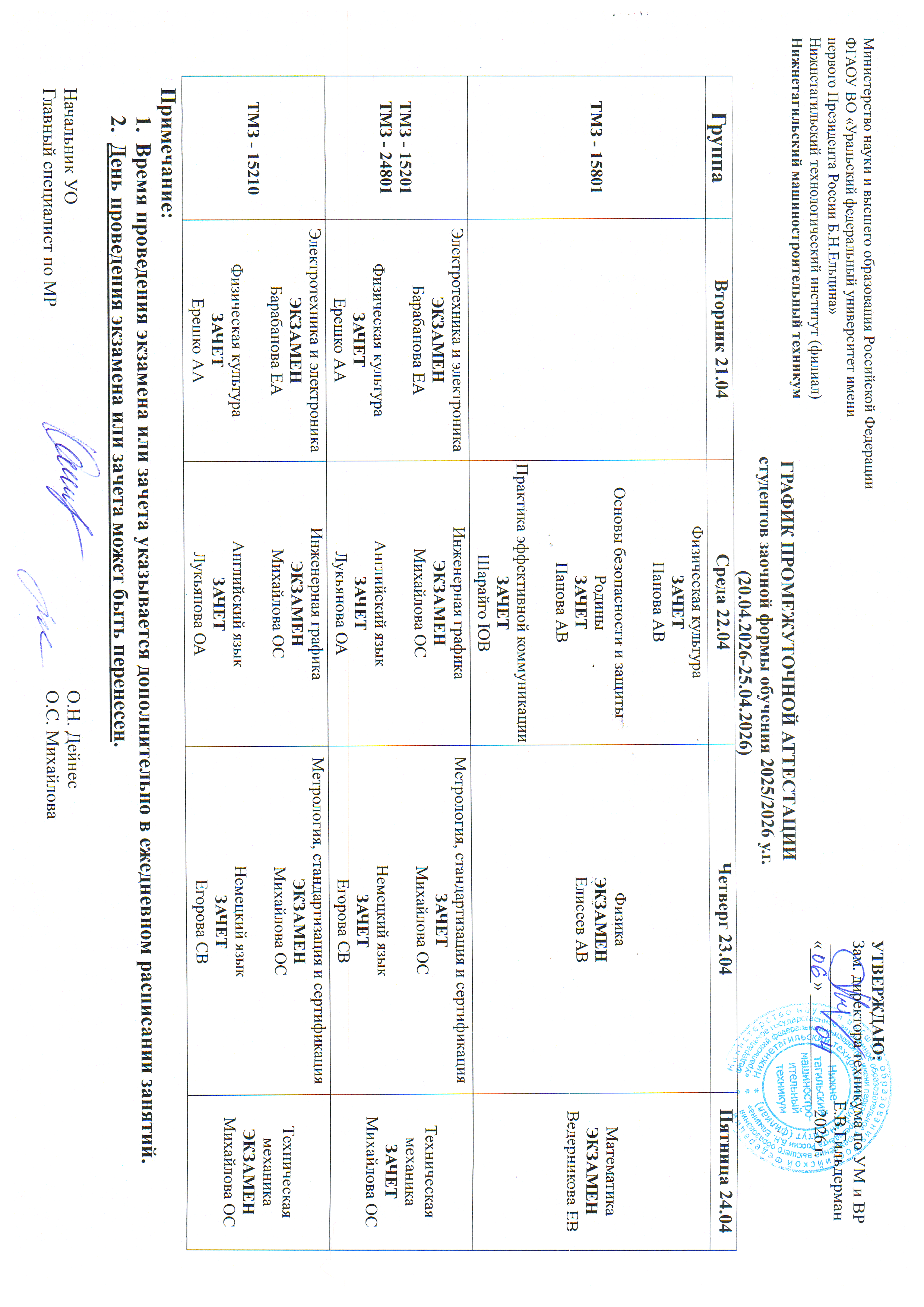 Студенты очного отделения Нижнетагильского машиностроительного техникума могут найти в этом подразделе актуальную информацию о графиках учебного процесса, выполнения курсовых проектов, экзаменов, консультаций и пересдач.