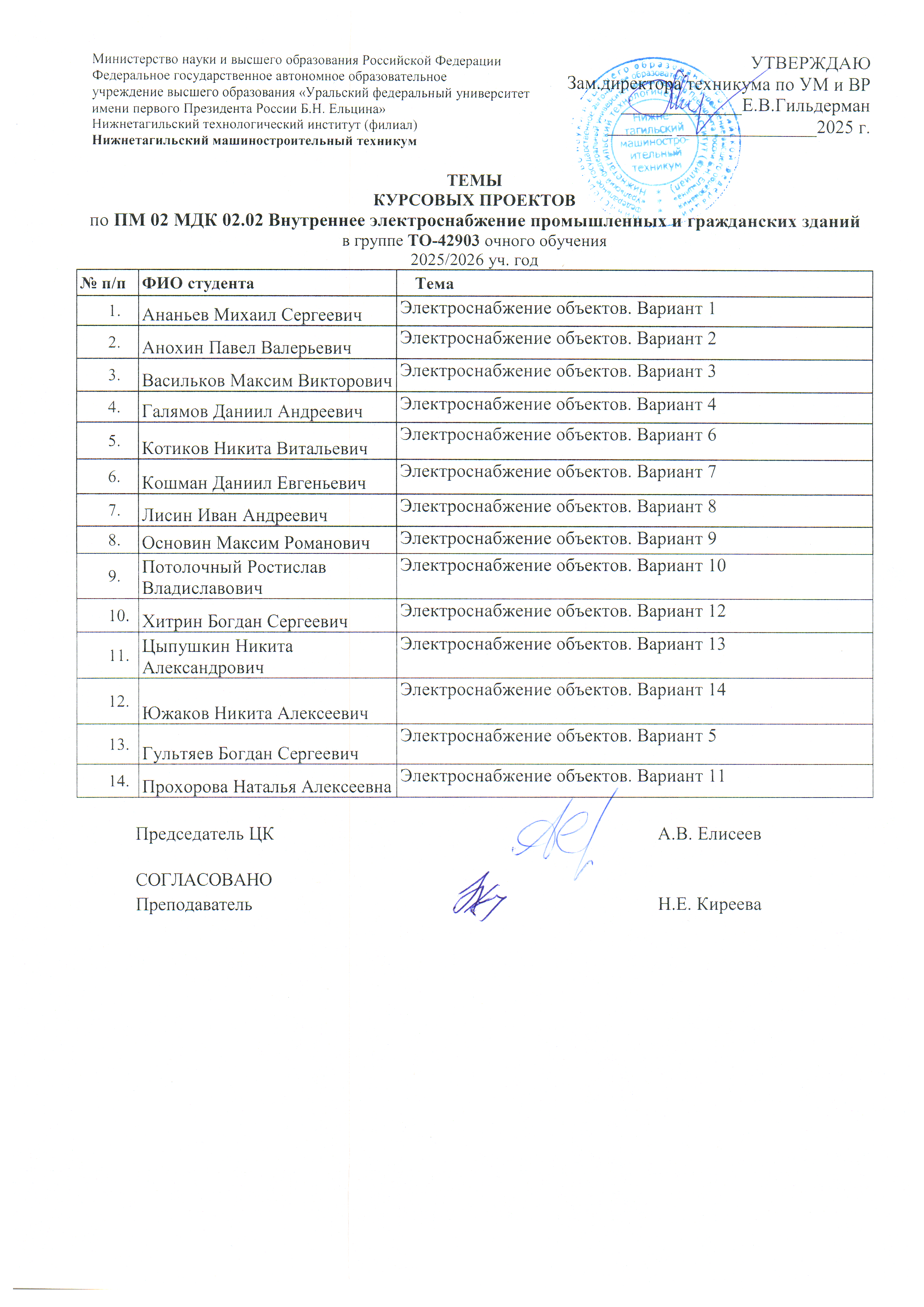 ТЕМЫ КУРСОВЫХ ПРОЕКТОВ