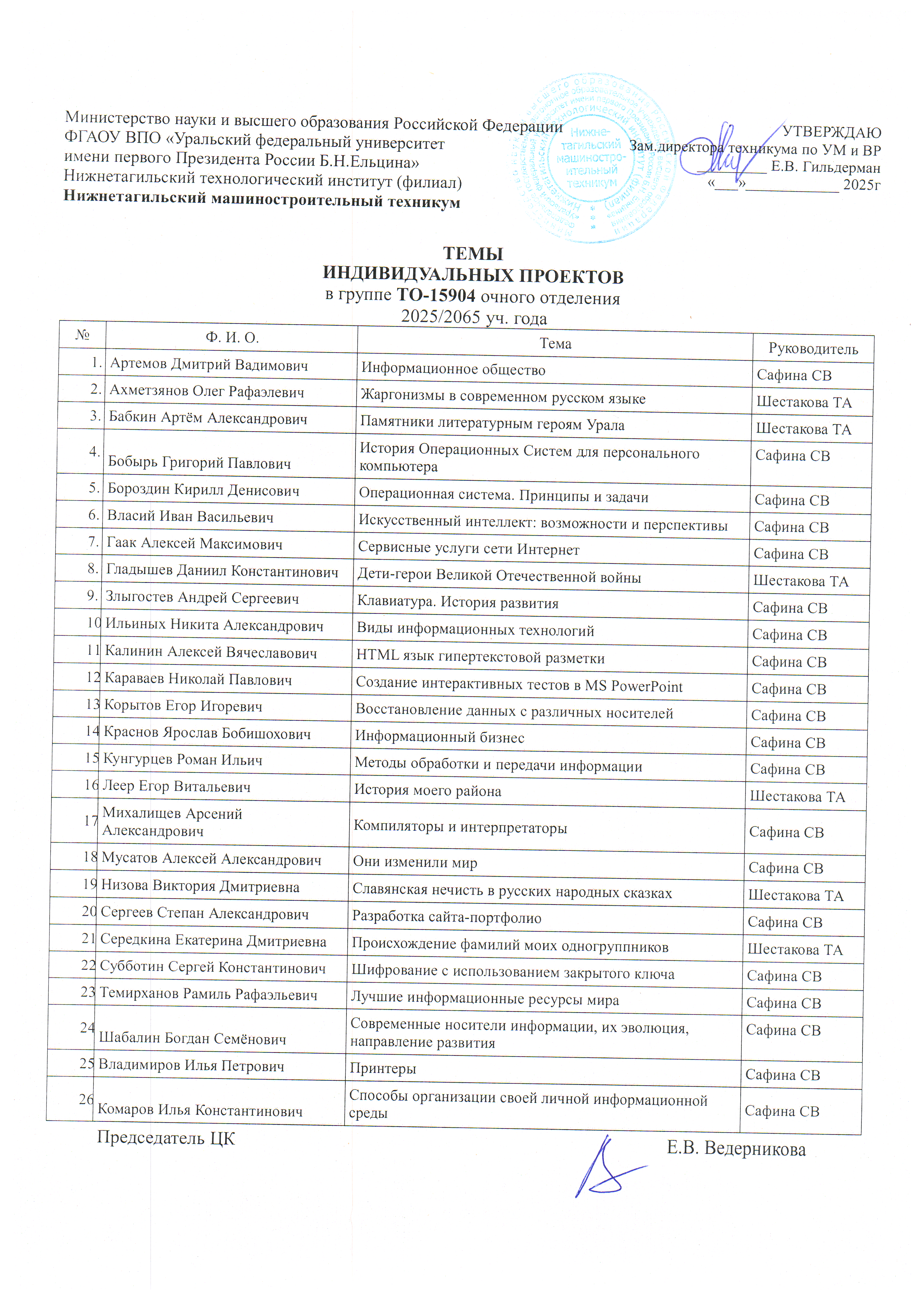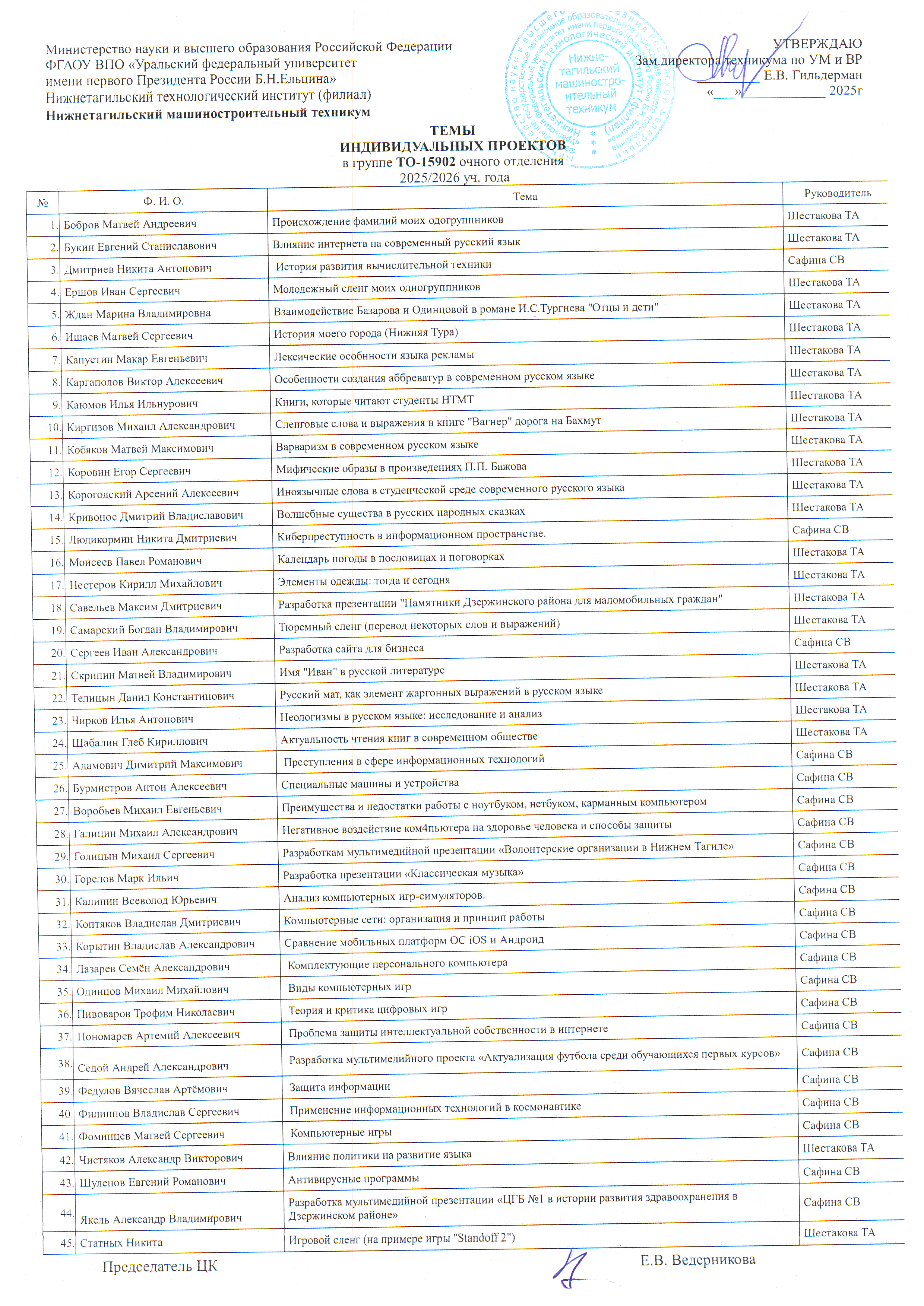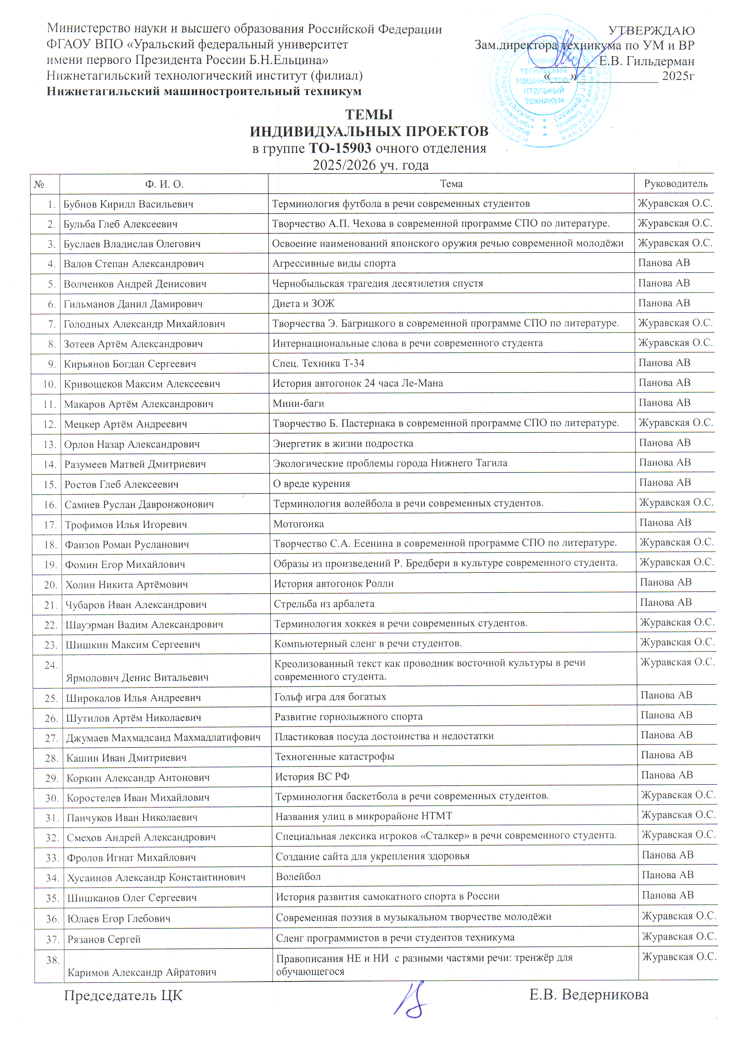 ТЕМЫ ИНДИВИДУАЛЬНЫХ ПРОЕКТОВ