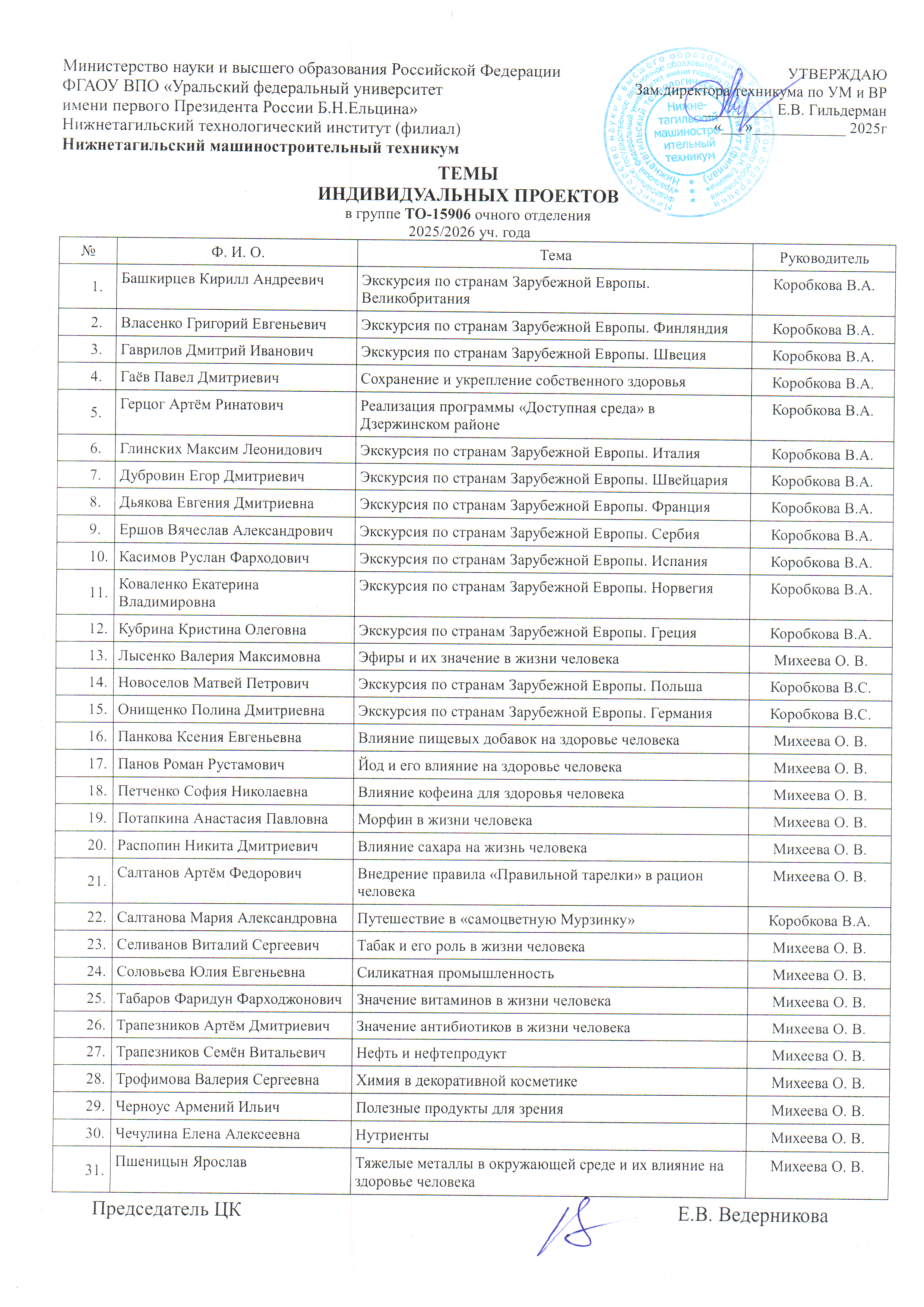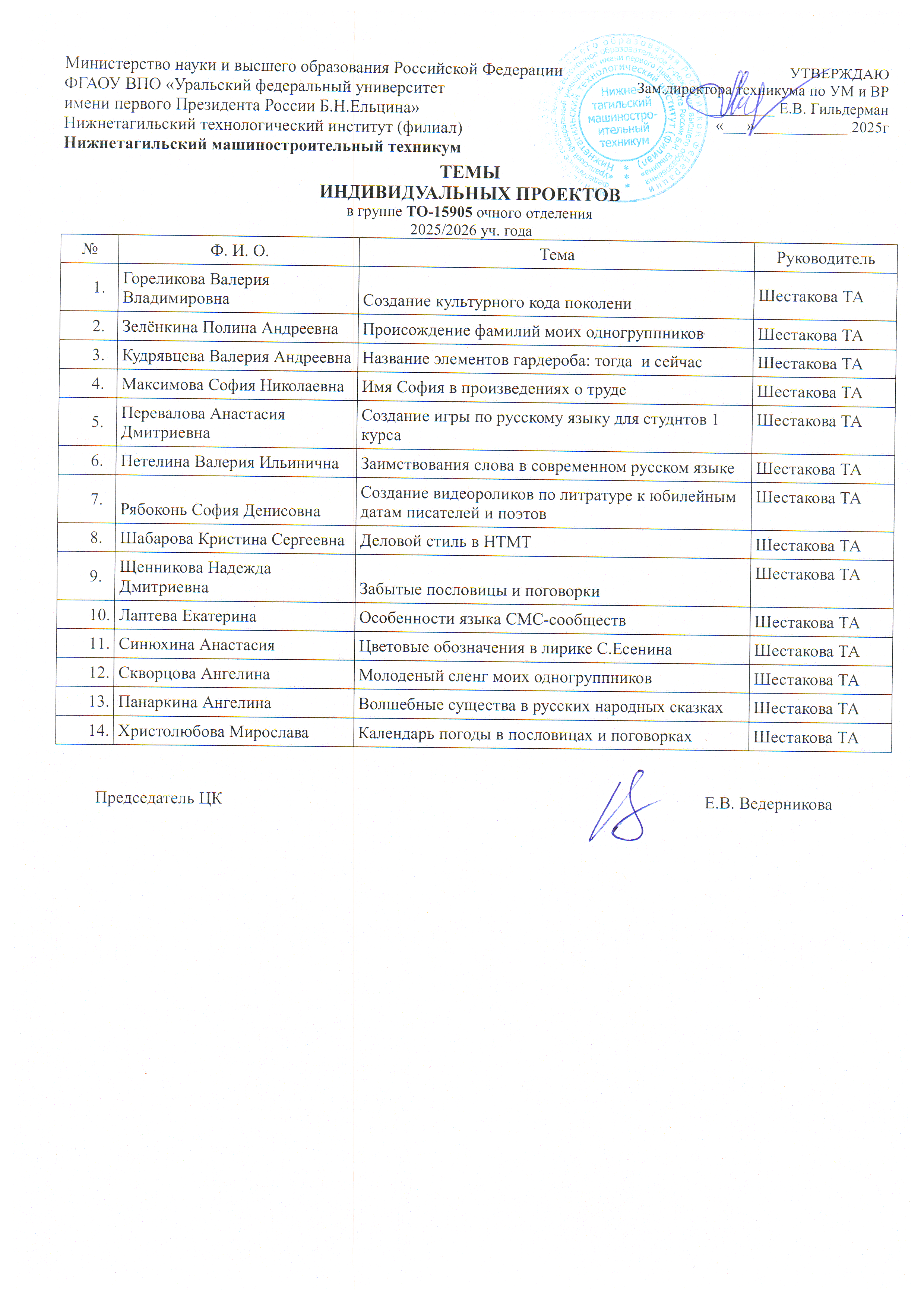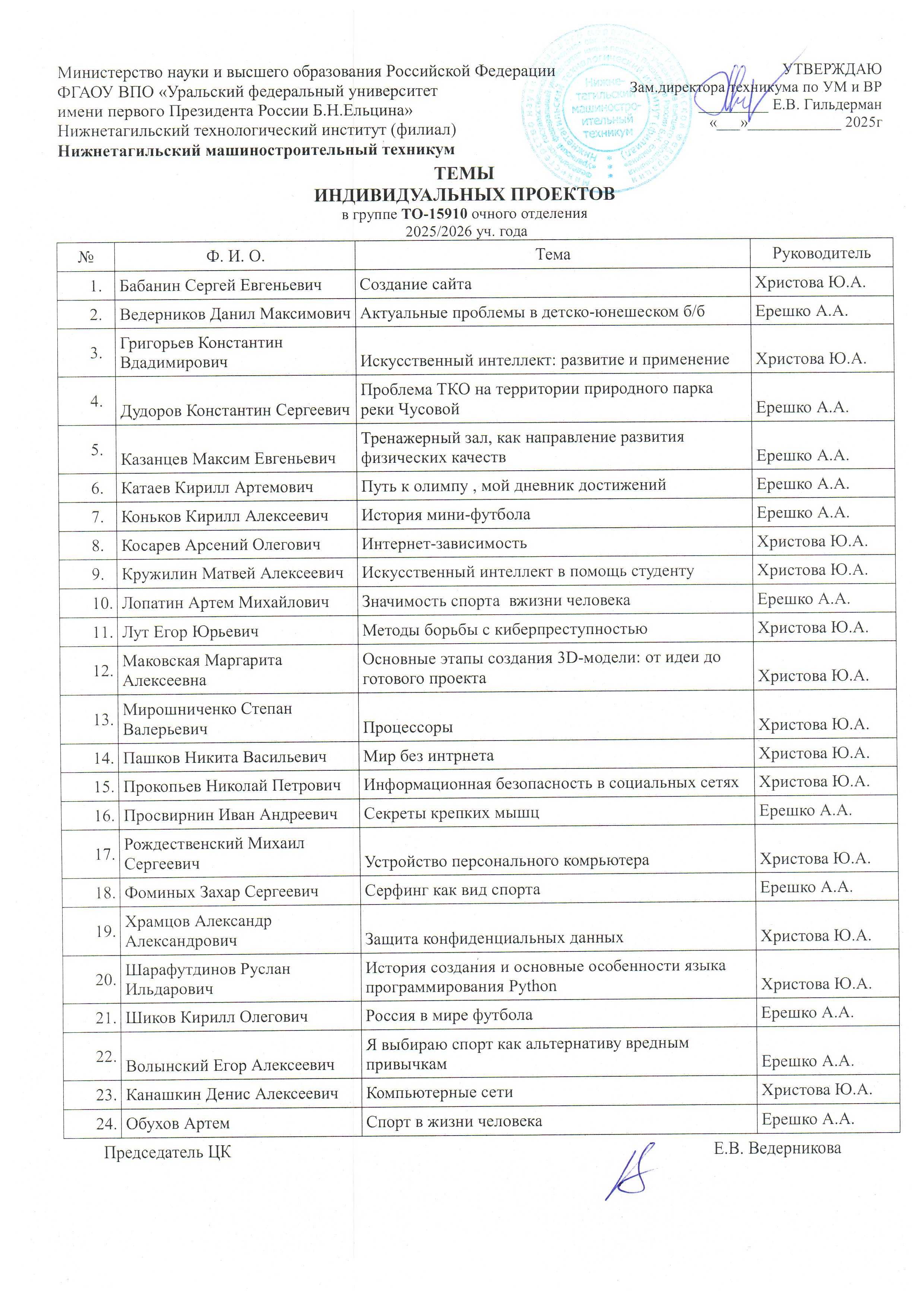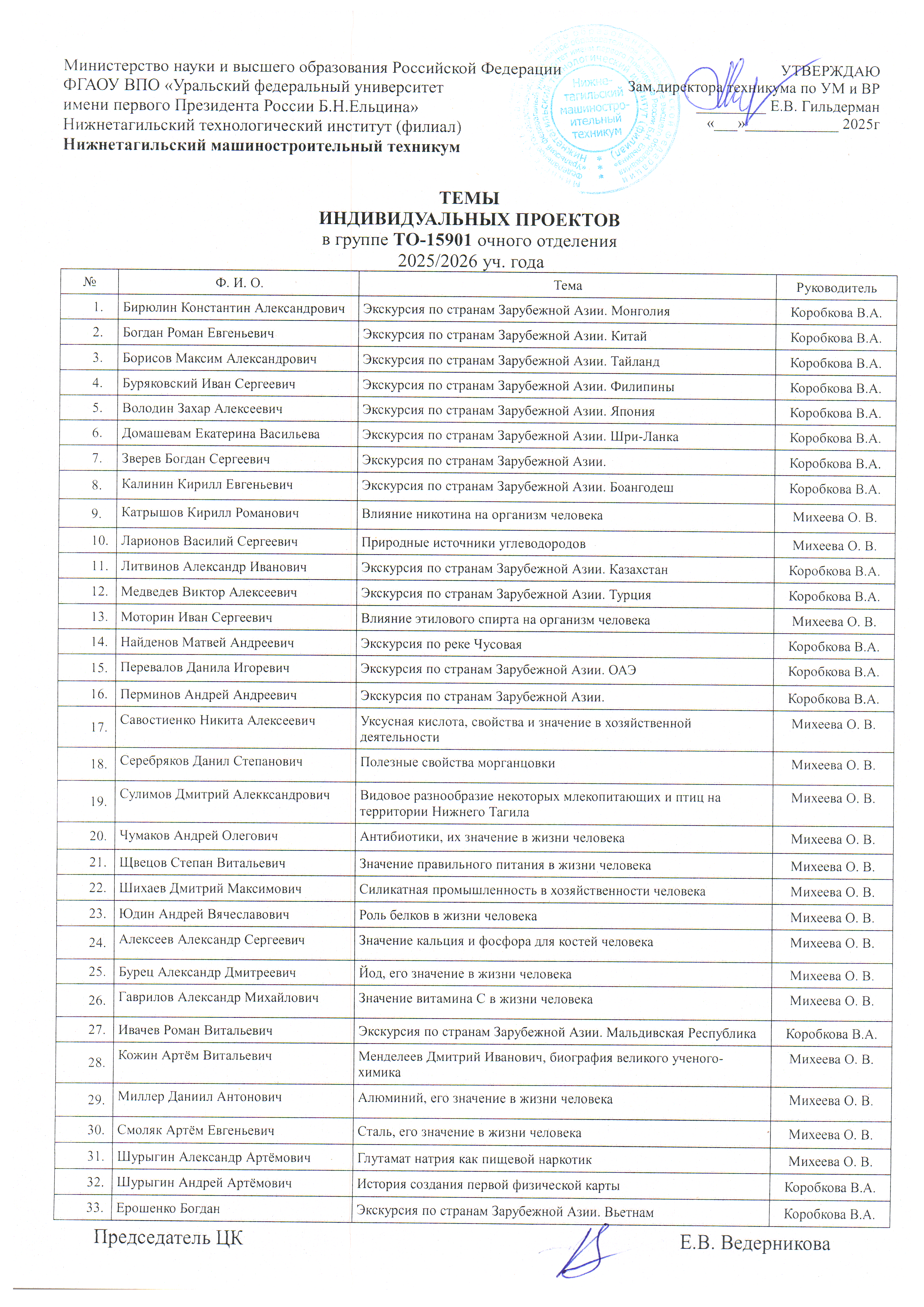ТЕМЫ ИНДИВИДУАЛЬНЫХ ПРОЕКТОВ