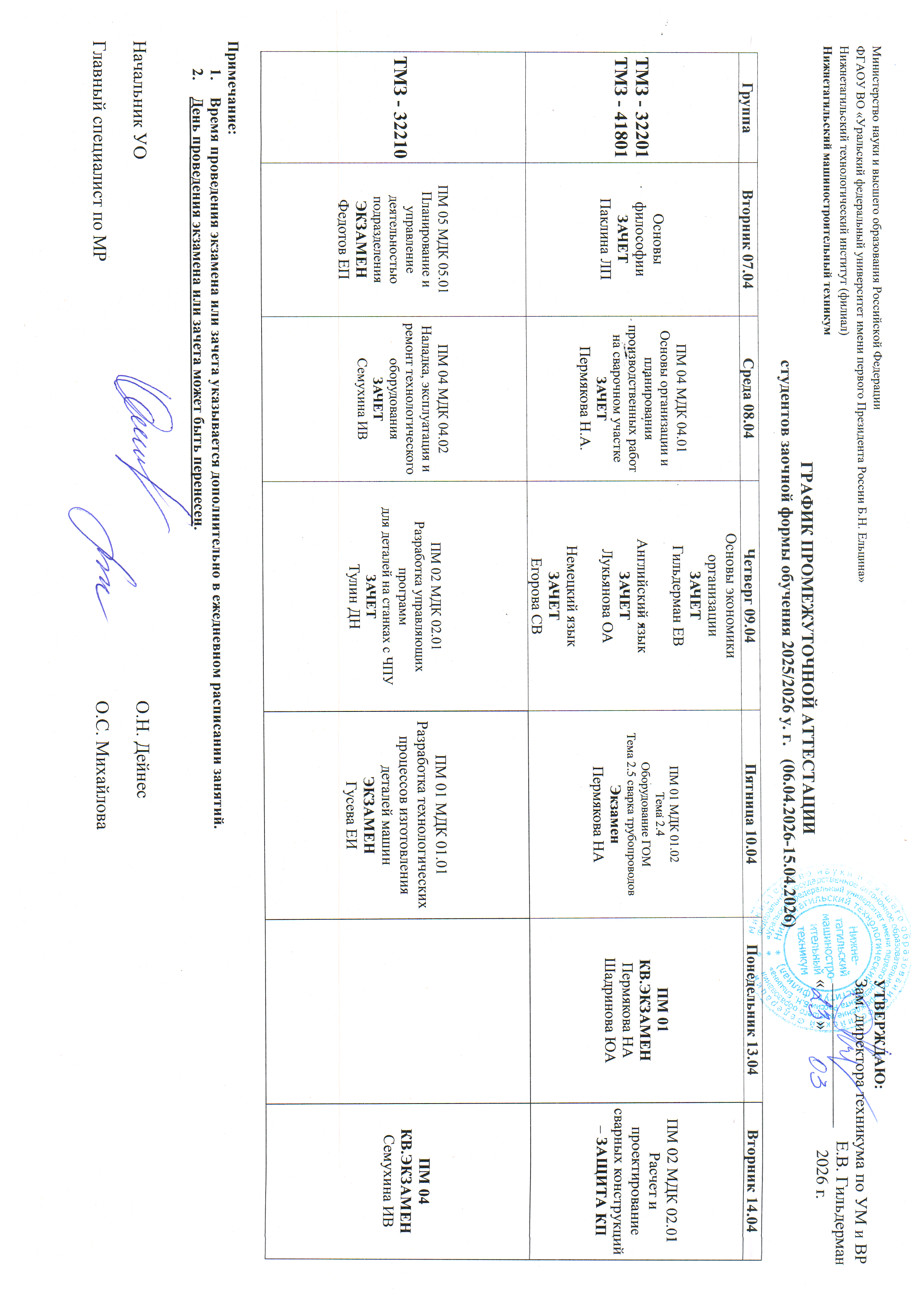Студенты очного отделения Нижнетагильского машиностроительного техникума могут найти в этом подразделе актуальную информацию о графиках учебного процесса, выполнения курсовых проектов, экзаменов, консультаций и пересдач.